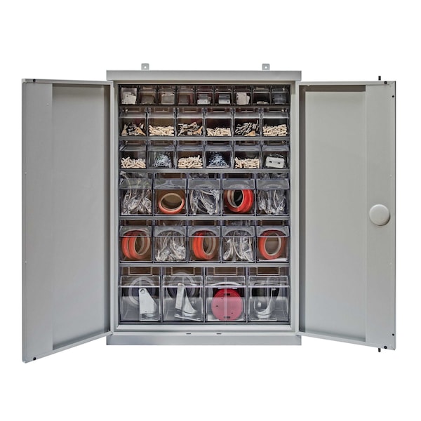 Tip Out Bin Cabinet, 26-1/4''W x 10''D x 36-1/2''H, flush door model, includes: 1 QTB304, 2 QTB305, 2 QTB306 and 1 QTB309 gray tip out bins, gray finish
