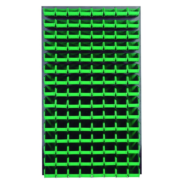 Louvered Panel, wall mounted, 36''L x 8''D x 61''H, includes: 120 QUS220, green bins, heavy-duty 16 gauge cold rolled steel, gray enamel coated finish mounting hardware not included