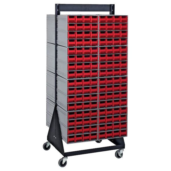 Interlocking Storage Cabinets Floor Stand, double sided, 24''D x 23-5/8''W x 52''H, 750 lbs. load capacity, includes: 16 QIC-161, 256 red drawers, 14 gauge steel, black coated finish
