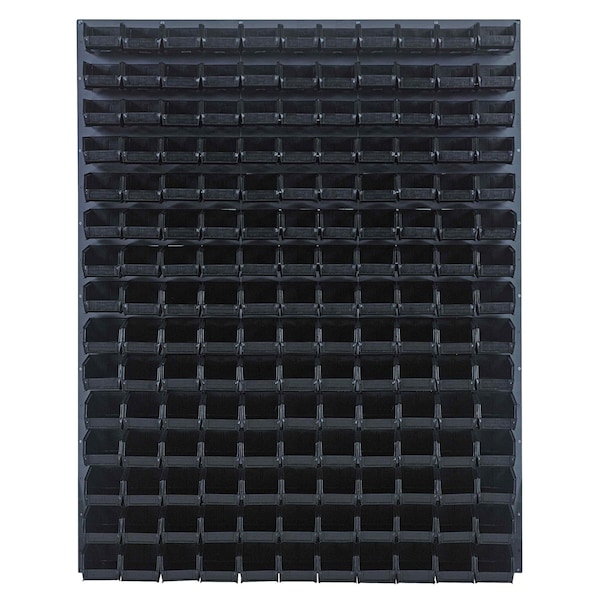 Louvered Panel, wall mounted, 48''L x 8''D x 61''H, includes: 165 QUS220, black bins, heavy-duty 16 gauge cold rolled steel, gray enamel coated finish mounting hardware not included