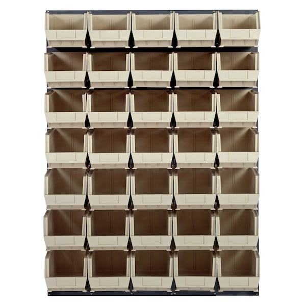 Louvered Panel, wall mounted, 48''L x 15''D x 61''H, includes: 35 QUS240, ivory bins, heavy-duty 16 gauge cold rolled steel, gray enamel coated finish mounting hardware not included