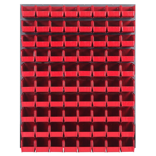 Louvered Panel, wall mounted, 48''L x 11''D x 61''H, includes: 80 QUS230, red bins, heavy-duty 16 gauge cold rolled steel, gray enamel coated finish mounting hardware not included