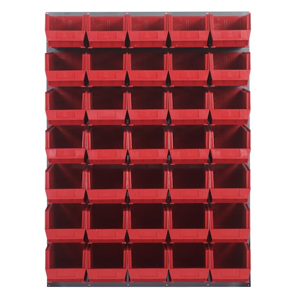 Louvered Panel, wall mounted, 48''L x 15''D x 61''H, includes: 35 QUS240, red bins, heavy-duty 16 gauge cold rolled steel, gray enamel coated finish mounting hardware not included