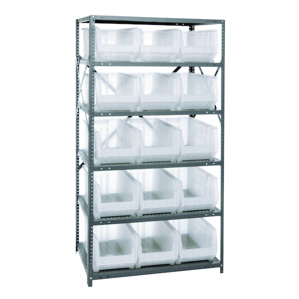 6 SHELF UNIT W/15 HULK BINS CLEAR