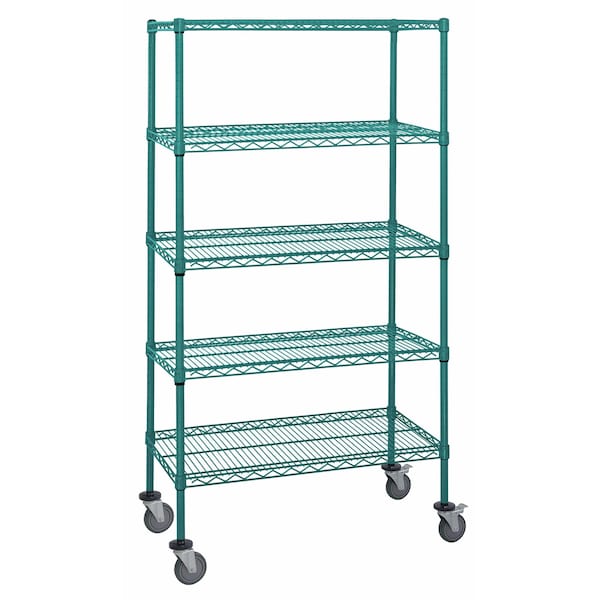 Mobile Cart, 36''W x 24''D x 80''H, 1200 lbs. load capacity, includes: 7 shelves, 4 posts, 1 inlay mat, 6 label holders, 4 donut bumpers and 4 5'' polyurethane swivel casters 2 with brakes, green epoxy antimicrobial finish, NSF
