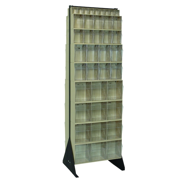 Tip Out Bin Floor Stand, double sided, 20-1/4''D x 23-5/8''W x 75''H, includes: 8 QTB303, 4 QTB304, 4 QTB305 and 2 QTB306 ivory bins, 14 gauge steel, black coated finish