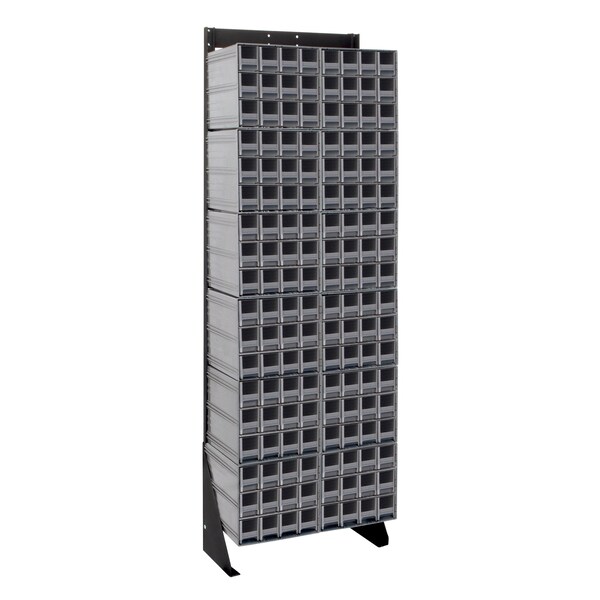 Interlocking Storage Cabinets Floor Stand, single sided, 12''D x 23-5/8''W x 75''H, 300 lbs. load capacity, includes: 12 QIC-122, 144 gray drawers, 14 gauge steel, black coated finish