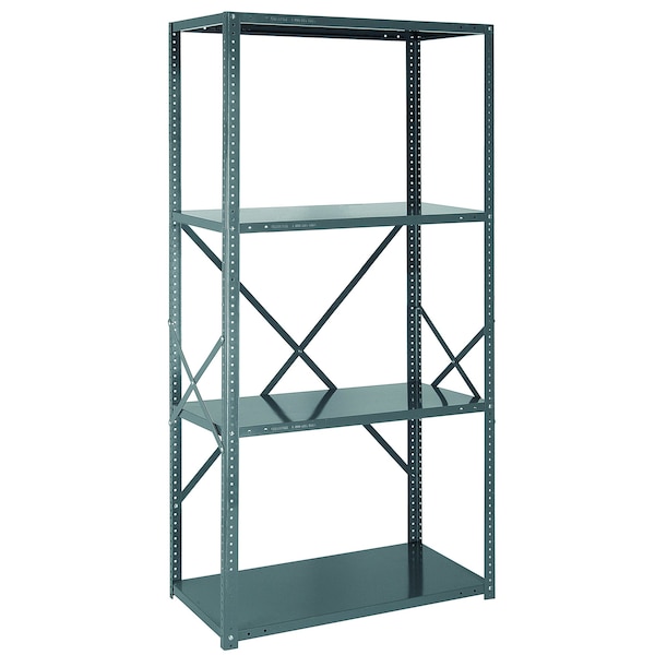 IRONMAN, 22 gauge steel shelving, open, 18''W x 36''L x 75''H, 400 lb. load capacity per shelf, includes: 4 shelves, uprights and crossbars