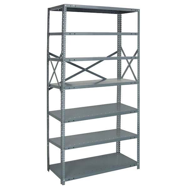 IRONMAN, 22 gauge steel shelving, open, 18''W x 42''L x 75''H, 400 lb. load capacity per shelf, includes: 7 shelves, uprights and crossbars