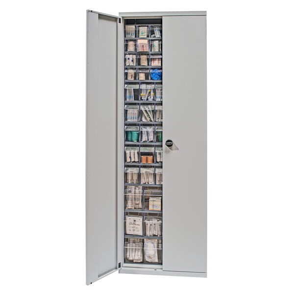 Tip Out Bin Cabinet, 26-1/4''W x 10''D x 79-1/2''H, flush door model, includes: 3 QTB304, 5 QTB305 and 4 QTB306 gray tip out bins, gray finish