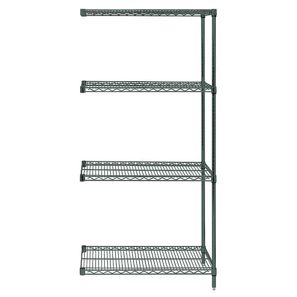 Wire Shelving Add-On Kit, Green Color, Epoxy Coated, Includes (2) Posts, (8) S Hooks, Includes Mounting Hardware No, Load Capacity per Shelf 600 lb, Material Steel, Mounting Hardware Required No, Overall Depth 36 in, Overall Height 63 in, Overall Width 60 in, Dry, Wet Recommended Environments, Standards NSF Approved, 2,400 lb, Shelf Configuration Add-On, Number of Shelves 4