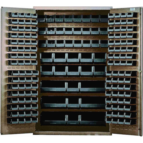 Heavy-Duty 48'' Bin Cabinet, 48''W x 24''D x 78''H, 14 gauge all welded construction, includes: 64 QUS210, 64 QUS220, 24 QUS230, 13 QUS240 and 6 QUS250 black bins, beige powder-coated finish