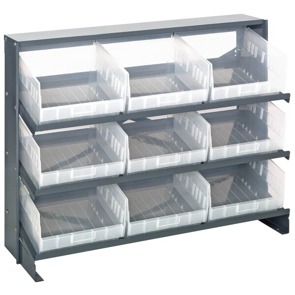 Pick Rack, slopped, bench style, 12-1/2''L x 36''W x 26-1/2''H, 250 lbs. capacity, 3 shelves configuration, includes:: 9 QSB209 clear bins