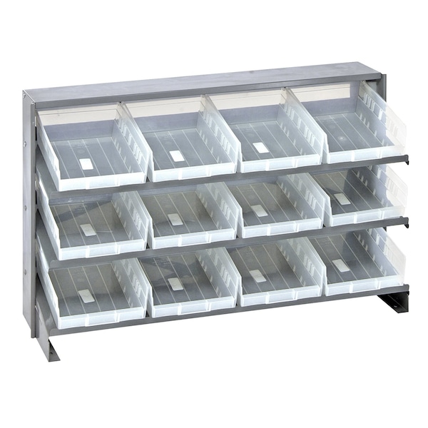 Pick Rack, slopped, bench style, 12-1/2''L x 36''W x 23''H, 250 lbs. capacity, 3 shelves configuration, includes: 12 QSB107 clear bins