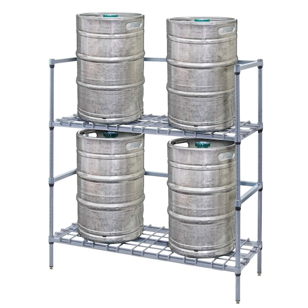 Tank and Beverage Container Dunnage Rack, wire, two-tier, modular, 48''W x 24''D x 54''H, 2 dunnage shelves, 2 3-sided frames, 4 54'' posts, gray epoxy antimicrobial finish, NSF