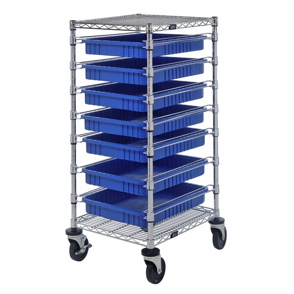 Bin Cart, mobile, 21''W x 24''L x 45''H, includes: 2 wire shelves, 7 22-1/2''L x 17-1/2''W x 3''H DG93030 blue bin and set of casters, chrome plated finish