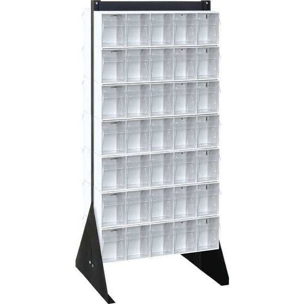 Tip-Out Rack, Compatible Bin Manufacturer Model Number QTB305WT, Frame Finish Powder Coated, Mounting Location Freestanding, Overall Height 52 in, Overall Length 20 1/4 in, Overall Width 23 5/8 in, Weight Capacity 600 lb, Number of Tiers 7, Bin Color White, Bin Inside Depth 3 3/4 in, Bin Inside Height 5 3/4 in, Bin Inside Width 4 1/4 in, Compatible Bin Grainger Part Number 8YAM4, Divider Adjustment Increments Not Applicable, Frame Material Thickness 14 ga, Includes Dividers Dividers Not Included