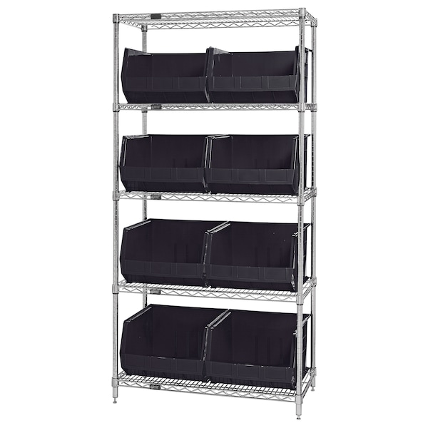 Each shelf has a capacity of 800lbs. Shelving unit has chrome finish for added strength and durability, make your unit mobile by purchasing the WR-00H mobile kit, unit has all welded construction, enhanced air circulation, can be used in dry storage environments for industrial applications, approved for use by the FDA, bins have open hopper fronts.