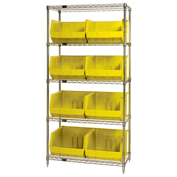 Each shelf has a capacity of 800lbs. Shelving unit has chrome finish for added strength and durability, make your unit mobile by purchasing the WR-00H mobile kit, unit has all welded construction, enhanced air circulation, can be used in dry storage environments for industrial applications, approved for use by the FDA, bins have open hopper fronts.