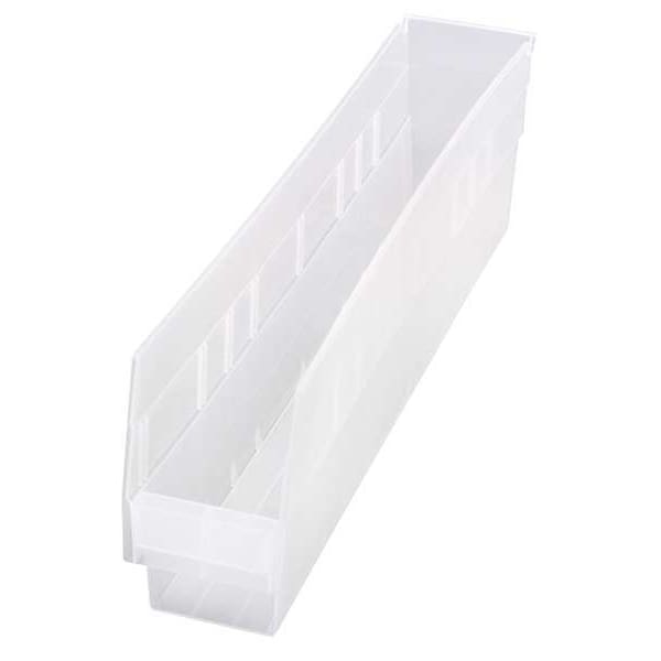 Shelf Bin, Color Clear, Includes Dividers Dividers Not Included, Includes Label Holder Label Holder Included, Material Plastic, Maximum Operating Temperature 250 Degrees F, Overall Height 6 in, Overall Length 23 5/8 in, Overall Width 4 1/8 in, Stackable Not Stacking Capable, Weight Capacity 50 lb, Mobility Stationary, Nestable Nesting Capable, Number of Divider Slots 7, Number of Long Divider Slots 0, Number of Short Divider Slots 7, Number of Dividers Not Applicable