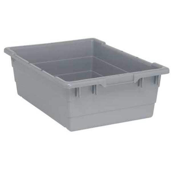 Cross Stacking Tote, Container Wall Type Solid, Fork Pockets Fork Pockets Not Included, Includes Lid Lid Not Included, Material Plastic, Maximum Operating Temperature 135 Degrees F, Minimum Operating Temperature -20 Degrees F, Body Color Gray, Nestable Nesting Capable, Overall Height 8 in, Overall Length 23 3/4 in, Overall Width 17 1/4 in, Resistant To Corrosion, Water, Stackable Stacking Capable, Stacking Capacity 100 lb, Volume Capacity 9.8 gal, Weight Capacity 100 lb