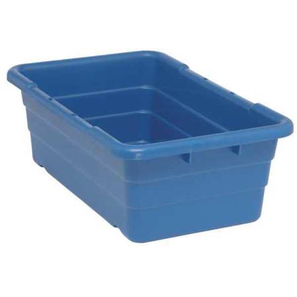 Cross Stacking Tote, Container Wall Type Solid, Fork Pockets Fork Pockets Not Included, Includes Lid Lid Not Included, Material Plastic, Maximum Operating Temperature 135 Degrees F, Minimum Operating Temperature -20 Degrees F, Body Color Blue, Nestable Nesting Capable, Overall Height 8 1/2 in, Overall Length 25 1/8 in, Overall Width 16 in, Resistant To Corrosion, Water, Stackable Stacking Capable, Stacking Capacity 100 lb, Volume Capacity 9.8 gal, Weight Capacity 100 lb