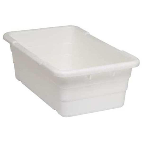 Cross Stacking Tote, Container Wall Type Solid, Fork Pockets Fork Pockets Not Included, Includes Lid Lid Not Included, Material Plastic, Maximum Operating Temperature 135 Degrees F, Minimum Operating Temperature -20 Degrees F, Body Color White, Nestable Nesting Capable, Overall Height 8 1/2 in, Overall Length 25 1/8 in, Overall Width 16 in, Resistant To Corrosion, Water, Stackable Stacking Capable, Stacking Capacity 100 lb, Volume Capacity 9.8 gal, Weight Capacity 100 lb