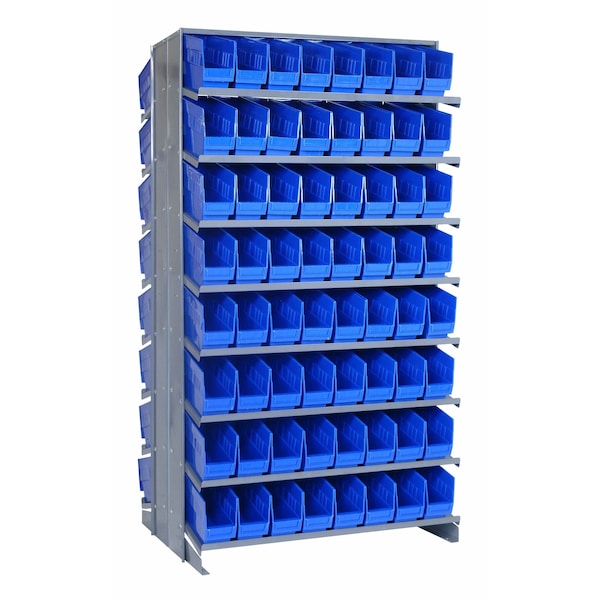 Pick Rack, slopped, double sided, 36''L x 36''W x 63-1/2''H, 800 lbs. capacity, 16 shelves configuration, includes: 128 QSB203 blue bins