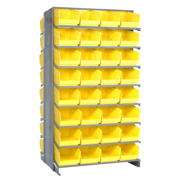 Pick Rack, slopped, double sided, 36''L x 36''W x 63-1/2''H, 800 lbs. capacity, 16 shelves configuration, includes: 64 QSB208 yellow bins