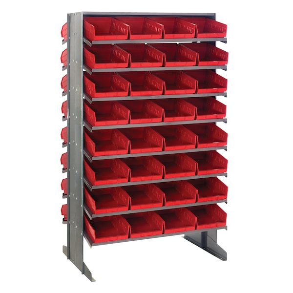 Pick Racks provide a convenient high density, easy access, sloped shelving system, available as bench units, single and double sided free standing and mobile units. Unit comes complete with Economical Shelf Bins. Sloped shelving unit keeps small and medium sized parts easily accessible. Open hopper front bins with label area, provide fast access to stored items. This all-in-one unit is easy to clean and will not rust or corrode. Bins are available in: Blue, Green, Ivory, Red, Yellow, Black and Clear. One bin color per unit.