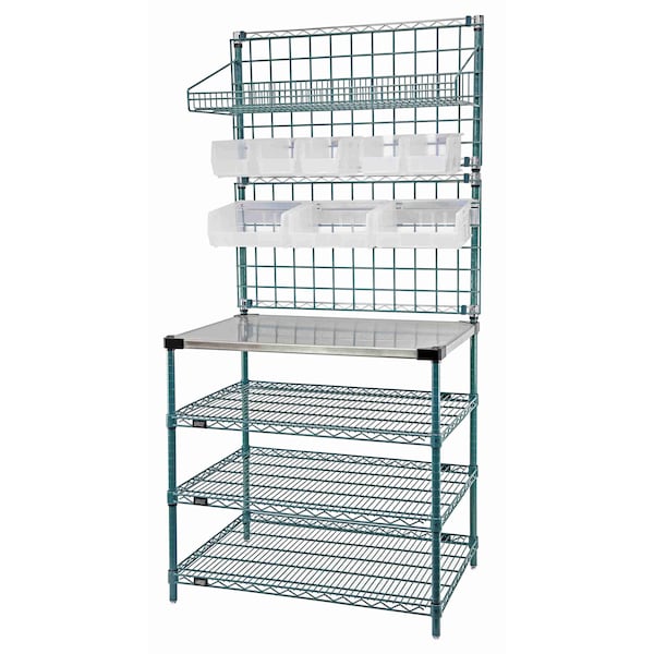Drive-Thru Workstation, 48''W x 24''D x 74''H, includes: 1 cantilever, 1 solid and 2 vented shelves, 2 grid panels and grid mounting hardware, green epoxy antimicrobial finish, NSF additional accessories may be added to the workstation from the Store Grid line