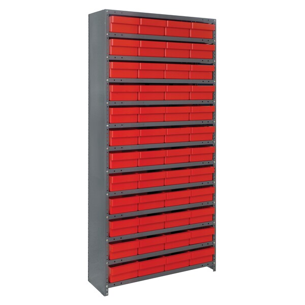Save time locating parts using our tough Euro Drawers with our sturdy open or closed steel shelving. 36” wide x 75” or 39” high units offer heavy-duty, high grade shelving with a 400 lb. capacity per shelf. Shelving is gray, drawers are available in blue, yellow, red and gray.