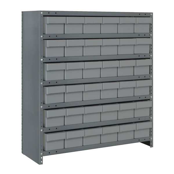 Save time locating parts using our tough Euro Drawers with our sturdy open or closed steel shelving. 36” wide x 75” or 39” high units offer heavy-duty, high grade shelving with a 400 lb. capacity per shelf. Shelving is gray, drawers are available in blue, yellow, red and gray.