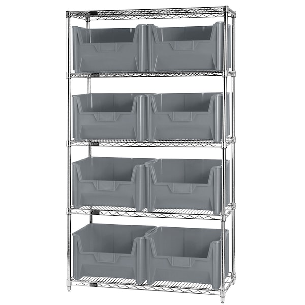 Organize, store and access your medium or large parts with this Giant Stack Container Wire Shelving System. 800 lb. capacity per shelf. System may be made mobile with the addition of the WR-00H mobile kit.