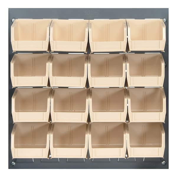 18”L x 19”H, 36”L X 19”H, 36”L X 61”H and 48”L X 61”H panels are available in 3 configurations. Louvered Panels are available in gray or oyster white color. Bins are available in blue, yellow, red, green, ivory, black and clear.