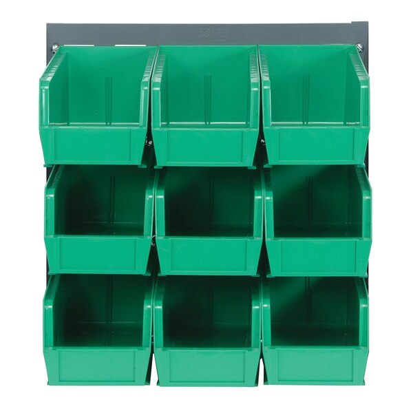 18”L x 19”H, 36”L X 19”H, 36”L X 61”H and 48”L X 61”H panels are available in 3 configurations. Louvered Panels are available in gray or oyster white color. Bins are available in blue, yellow, red, green, ivory, black and clear.