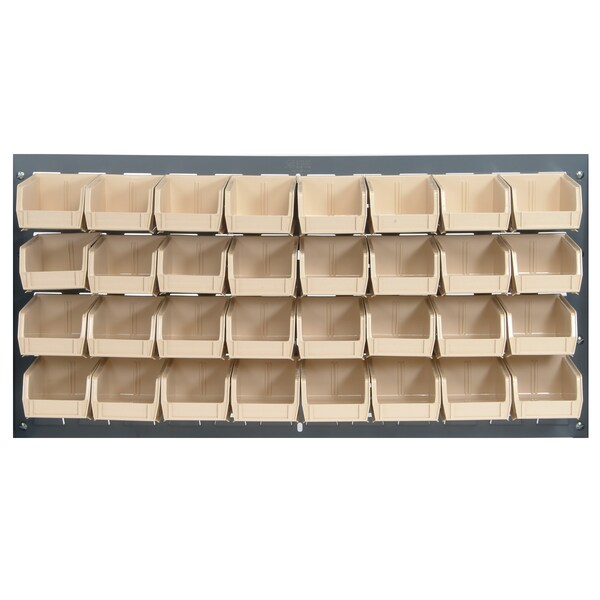 18”L x 19”H, 36”L X 19”H, 36”L X 61”H and 48”L X 61”H panels are available in 3 configurations. Louvered Panels are available in gray or oyster white color. Bins are available in blue, yellow, red, green, ivory, black and clear.