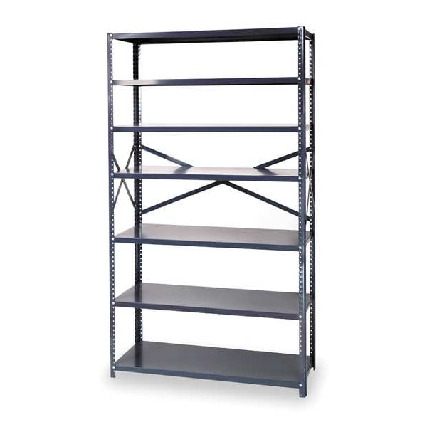 Metal Shelving, Bin Front Type Open, Frame Material Steel, Frame Color Gray, Powder Coated, Load Capacity per Shelf 40 lb, Mobility Stationary, Number of Shelves 8, Number of Usable Sides 1, Overall Depth 18 in, Overall Height 75 in, Overall Width 42 in, Powder Coated Shelf Finish, Steel Shelf Material, No, Light-Duty Duty Rating, Assembled Unassembled