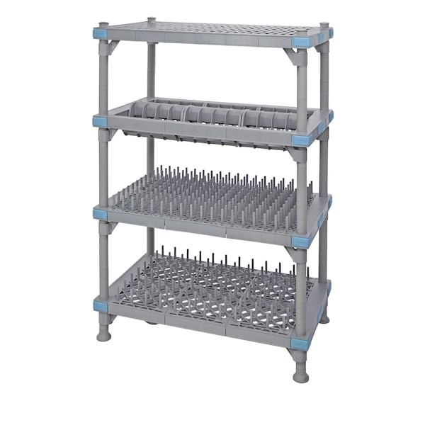 Millenia Drying Rack Unit, mobile, 42''W x 24''D x 68''H, includes: 4 shelf frames, 4 posts, 12 waved drying rack sections, 4 polymer casters 2 with breaks and 4 donut bumpers, gray finish