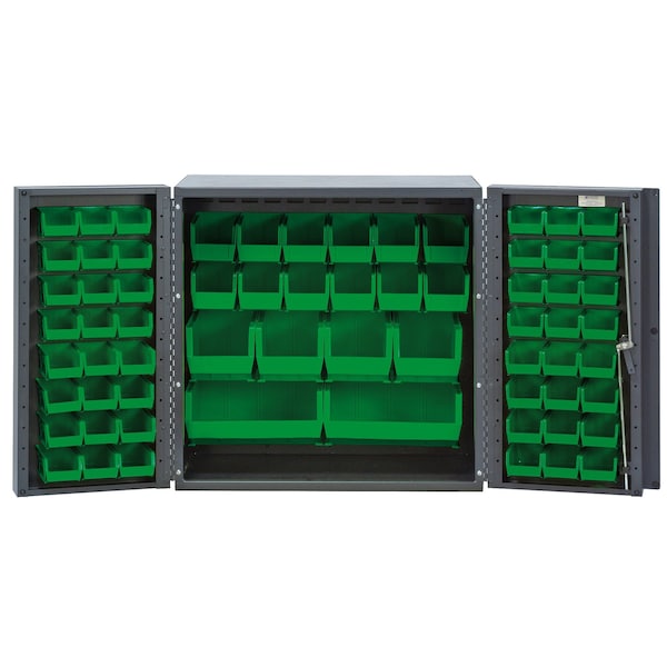 Heavy-Duty 36'' Bin Cabinet, 36''W x 24''D x 36''H, 14 gauge all welded construction, includes: 24 QUS210, 24 QUS220, 12 QUS230, 4 QUS240 and 2 QUS250 green bins, gray powder-coated finish