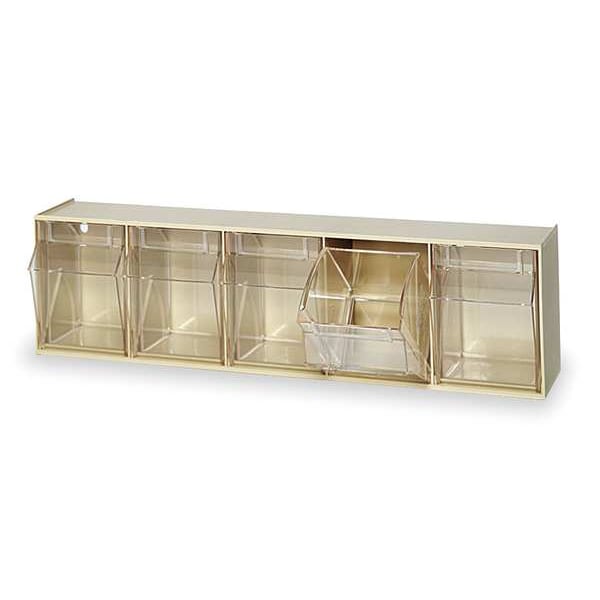Tip-Out Bin, Frame Color Beige, Frame Finish Unfinished, Mounting Location Freestanding, Wall, Overall Height 6 1/2 in, Overall Length 5 1/4 in, Overall Width 23 5/8 in, Stackable Stacking Capable, Volume Capacity 0.25 cu ft, Weight Capacity 40 lb, Number of Tiers 1, Bin Color Clear, Bin Inside Depth 3 3/4 in, Bin Inside Height 5 3/4 in, Bin Inside Width 4 1/4 in, Divider Adjustment Increments Not Applicable, Includes Dividers Dividers Not Included, Material Plastic, Mobility Stationary