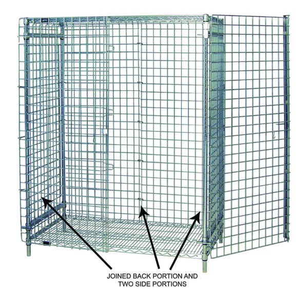 Security panel set, all welded heavy-duty 1/4'' diameter wire on 2'' x 2'' centers, includes (1) back and (2) sides, chrome plated finish, suitable for dry storage applications, NSF approved