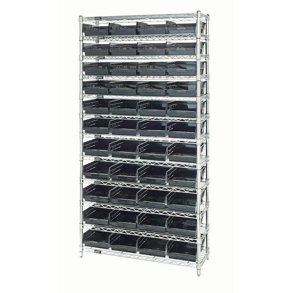 Complete bin systems are available with 4 different size bins on a 12”W x 36”L x 36”H unit. This all-purpose bin center is an economical high density storage system that provides easy visibility to stored contents. Easy boltless assembly, wire allows air to circulate as well as provides ideal product visibility, durable chrome finish endures years of heavy-duty dependability and service. Bins are available in 4 colors: Blue, Green, Ivory, Red, Yellow, Black and Clear.