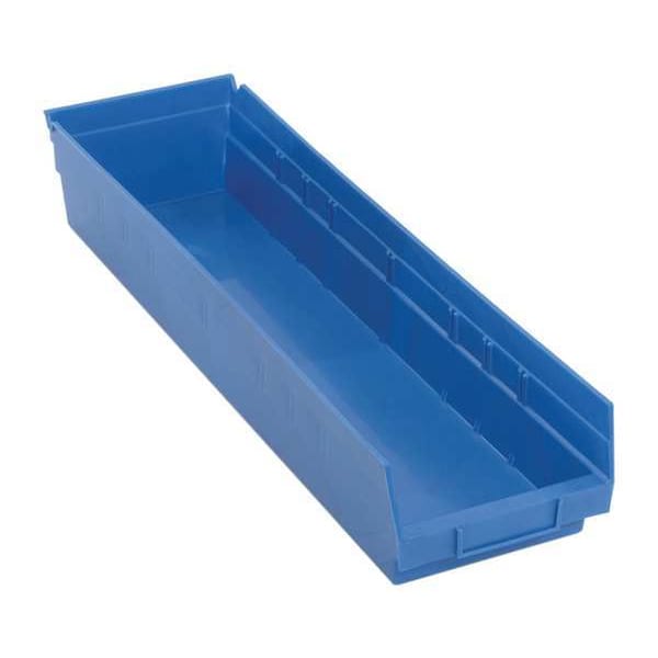 Shelf Storage Bin, Polypropylene, Blue, 4 in H, 6 5/8 in W, 23 5/8 in L