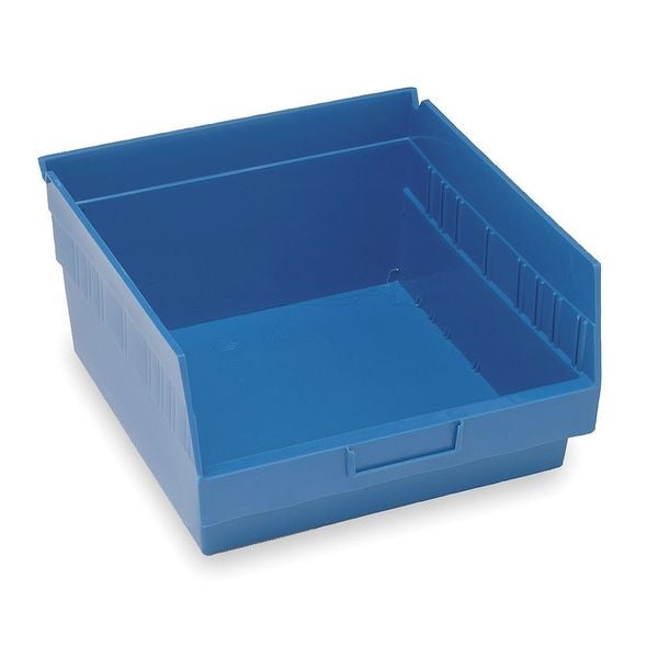 Shelf Bin, Color Blue, Includes Dividers Dividers Not Included, Includes Label Holder Label Holder Included, Material Plastic, Maximum Operating Temperature 250 Degrees F, Overall Height 6 in, Overall Length 11 5/8 in, Overall Width 11 1/8 in, Stackable Not Stacking Capable, Weight Capacity 50 lb, Mobility Stationary, Nestable Nesting Capable, Number of Divider Slots 8, Number of Long Divider Slots 0, Number of Short Divider Slots 8, Number of Dividers Not Applicable