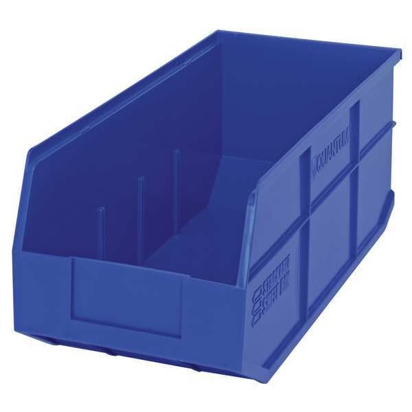 Shelf Bin, Color Blue, Includes Dividers Dividers Not Included, Includes Label Holder Label Holder Included, Material Plastic, Maximum Operating Temperature 250 Degrees F, Overall Height 7 in, Overall Length 18 in, Overall Width 8 1/4 in, Stackable Stacking Capable, Weight Capacity 70 lb, Mobility Stationary, Nestable Not Nesting Capable, Number of Divider Slots 3, Number of Long Divider Slots 0, Number of Short Divider Slots 3, Number of Dividers Not Applicable