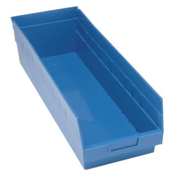 Shelf Storage Bin, Polypropylene, Blue, 8 in H, 8 3/8 in W, 23 5/8 in L