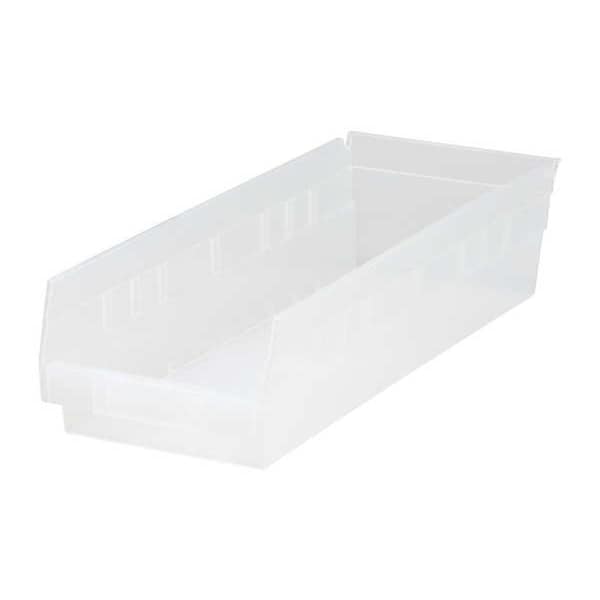 Shelf Storage Bin, Polypropylene, Clear, 4 in H, 6 5/8 in W, 17 7/8 in L