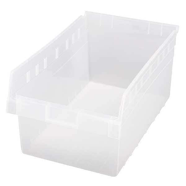 Shelf Storage Bin, Polypropylene, Clear, 8 in H, 11 1/8 in W, 17 7/8 in L