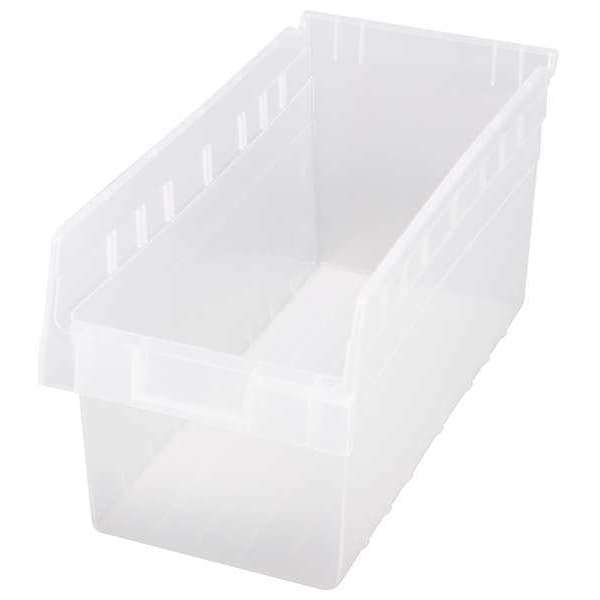 Shelf Storage Bin, Polypropylene, Clear, 8 in H, 8 3/8 in W, 17 7/8 in L